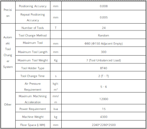 В состав оборудования также входят эффективные системы смазки, охлаждения и пневматики, а также удобный интерфейс RS232, обеспечивающий хорошую совместимость при эксплуатации. Это идеальное решение для высокоскоростной и высокоточной обработки металлических деталей, подходящее для широкого спектра отраслей, включая производство пресс-форм, автокомпонентов и других областей.