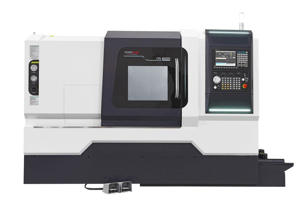 COORAY CRL200MC — это высокоскоростной и высокоточный ЧПУ токарный центр, оснащенный двойными электророторными шпинделями, двенадцатипозиционной серводинамической инструментальной головкой, жесткими роликовыми линейными направляющими, обладающий функцией оси Y и функцией двойной оси C, способный выполнять токарные и фрезерные операции над заготовками. Он особенно подходит для обработки, при которой все или большинство операций можно выполнить в одной установке.